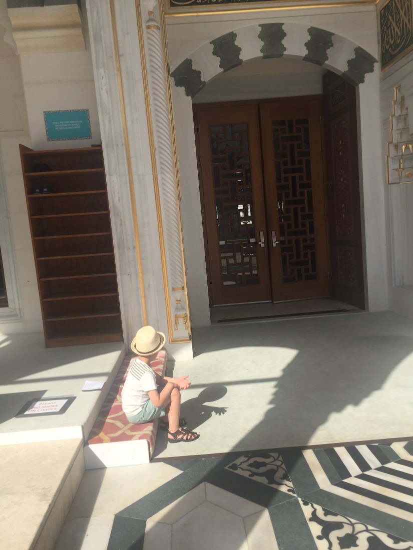 I was so excited to introduce my kids, especially my son who is four years old and curious to the history of Muslim architecture and Calligraphy. Talking about Calligraphy, Turks used Arabic alphabet for approximately one thousand years until the foundation of the Republic of Turkey and the adoption of Latin alphabet in 1928. Creativity led them to modify this type of writing in various ways and turn it into a fine art. Istanbul, the center of the Ottoman Empire, is the place where the most mature and most beautiful samples of the art of Calligraphy were produced.