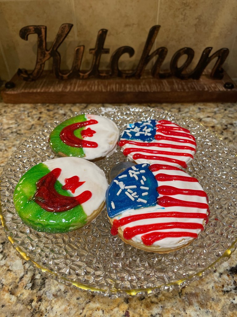I have decorated the above cookies, but explained to my kids that the American Flag has 50 stars representing the 50 states and there are 13 stripes representing the 13 original colonies.
