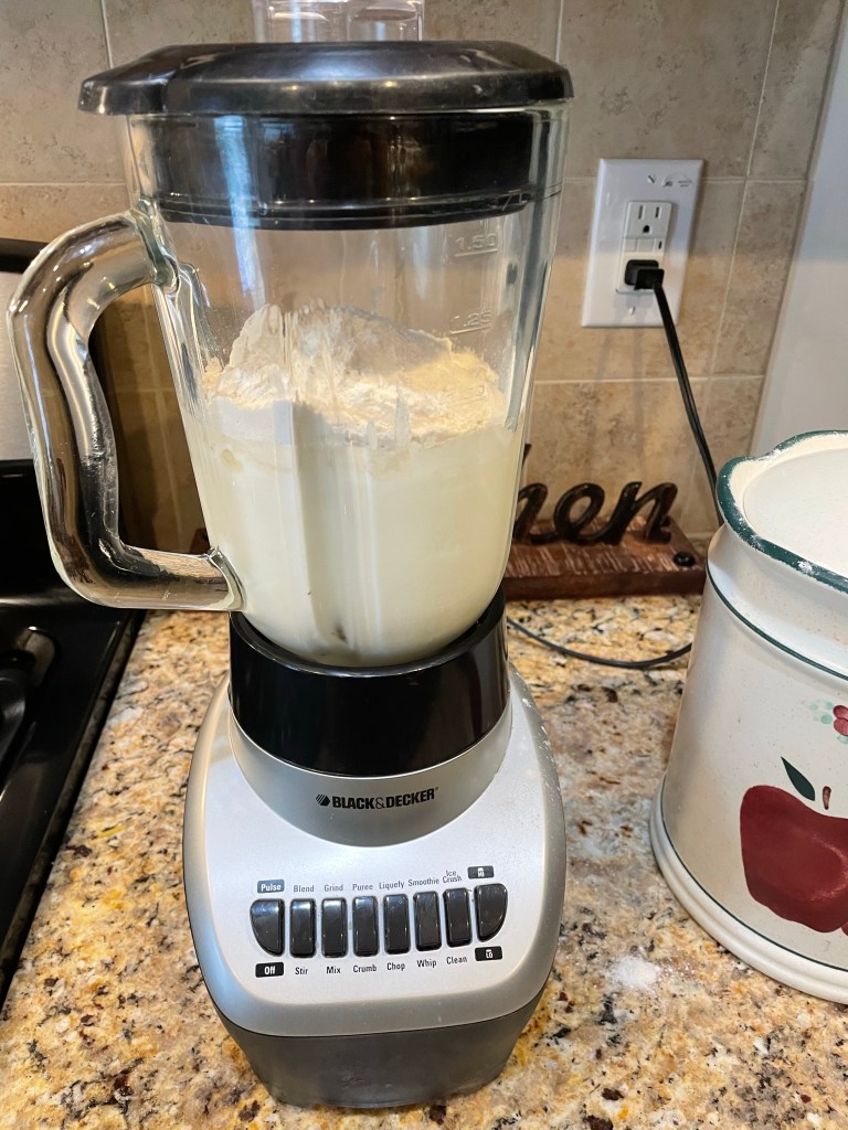 Add the milk, eggs, sugar, oil, and blend everything for 1 minute. Add the vanilla extract and the flour gradually and blend for another 2 minutes.