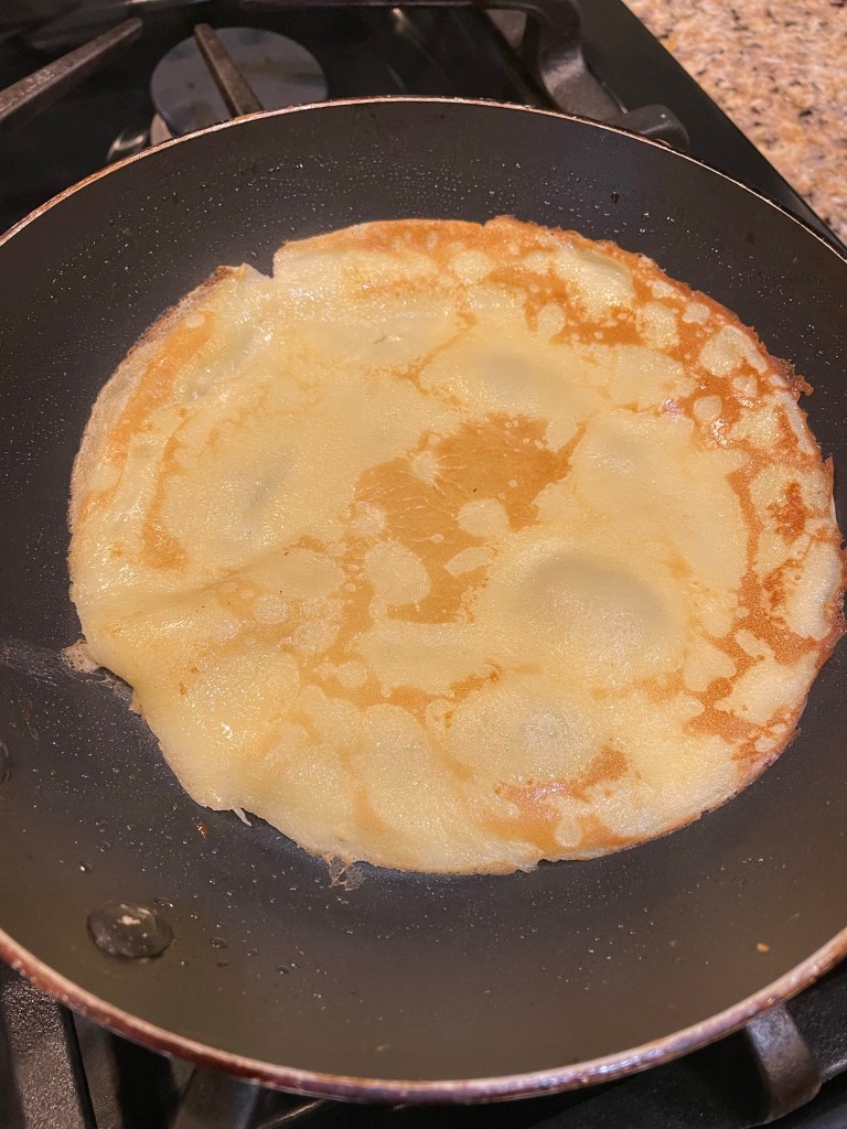 – Put the crepes aside on a plate as you go along, and put a piece of foil over them to keep them warm and soft.