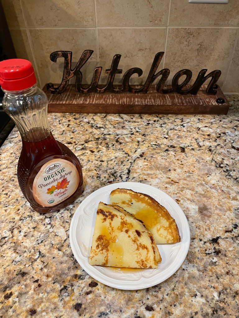 Today, I surprised my son with his favorite breakfast. Hot chocolate and pancakes.