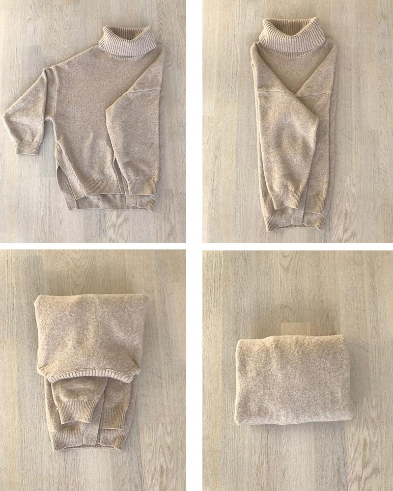4. Fold the sweater in half horizontally.