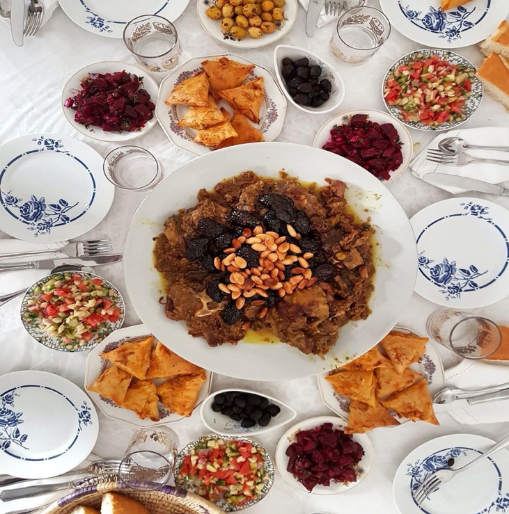 Tajine is often served in North African countries like Morocco and Algeria. It is a slow-cooked stew prepared with some sort of meat (often lamb or beef), with vegetables and/or fruits like plums and apricots.