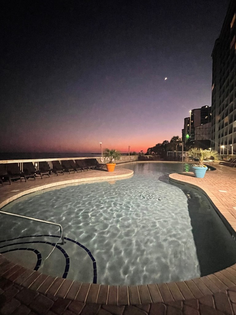 When night comes, everything slows even more. The sky darkens, the air turns sharper, and the beach disappears into sound instead of sight. The waves keep singing—steady, patient, familiar. I sit with that rhythm for a while, wrapped in layers, letting the noise of everything else fade. It feels grounding, like the ocean is keeping watch while the day quietly closes.